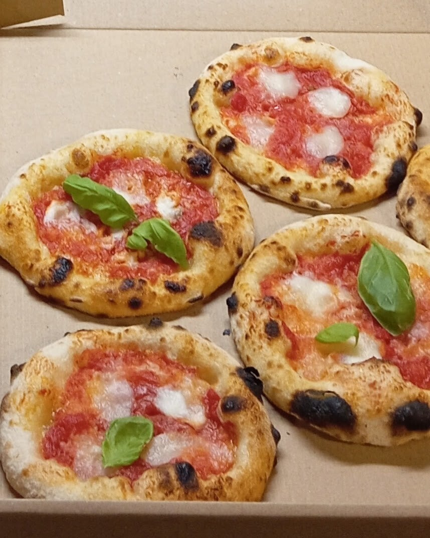 Nos mini pizzas napolitaines sont préparées artisanalement avec pate maturées de 24 heures, façonnage à la main et cuisson au four napolitain.